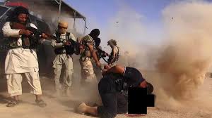 kelompok ISIS sedang menembaki tawanan mereka.